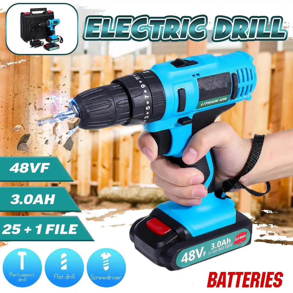 New Product 200W 48VF Cordless Electric Screwdriver Drill Li-Ion Battery Handheld Rechargeable Drill Impact Pow